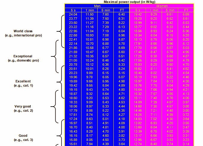 さらに横にある見出しを参照すると5秒・1分の出力はアメリカ国内プロに匹敵し、5分・FTPはカテゴリー1に該当していることが分かります。